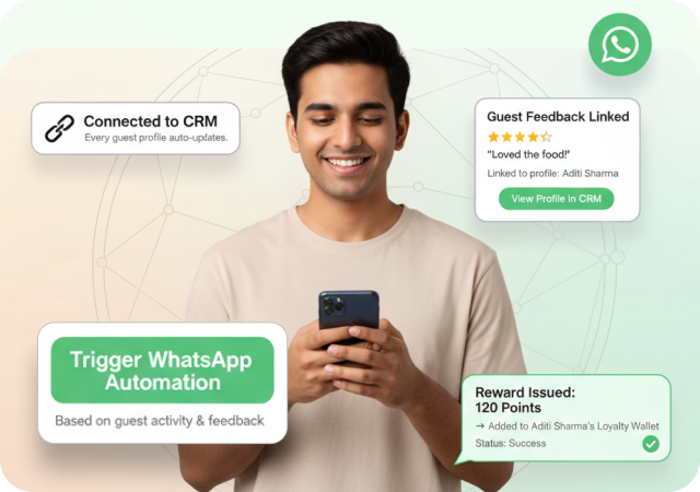 Collect feedback effortlessly and build trust with AiCubix Feedback & Reviews, a smart system that helps you understand your guests, improve service, and boost online ratings, all through WhatsApp.