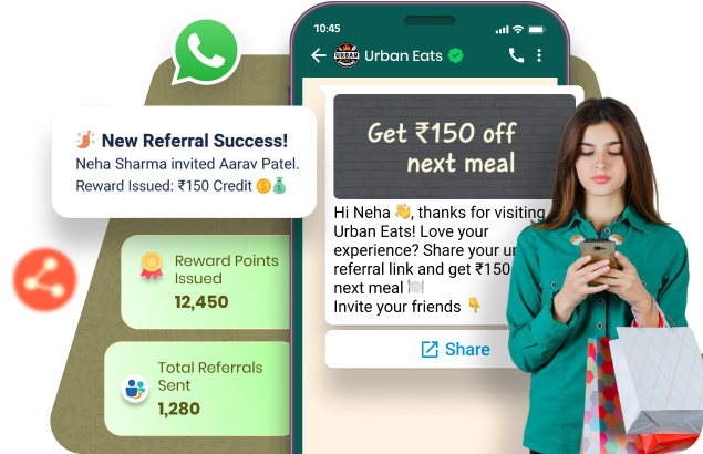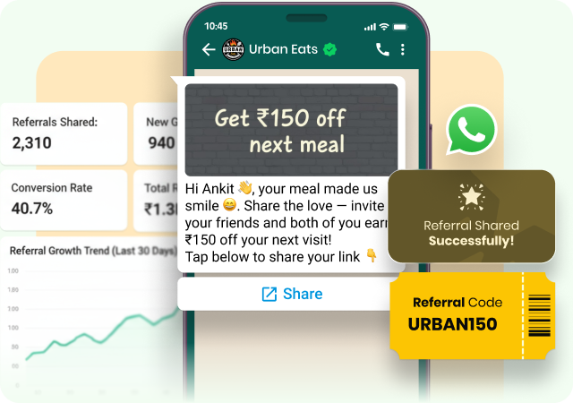 Guests share a simple referral link on WhatsApp, helping you reach new audiences effortlessly.