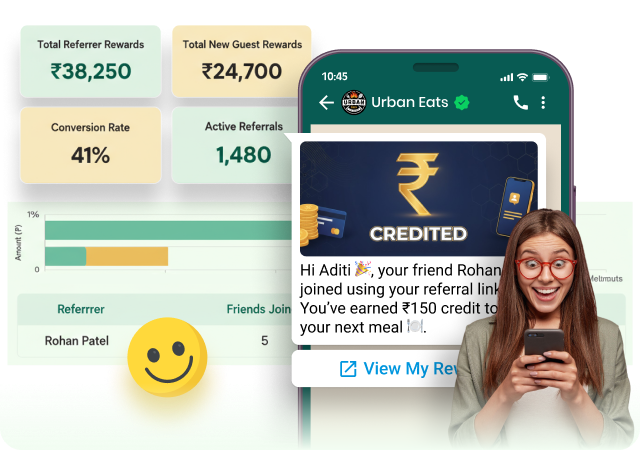 With AiCubix Referrals, let your happy diners spread the word and bring in new guests — automatically through WhatsApp. Create a rewarding referral programme that helps your business grow organically while appreciating the customers who make it happen.