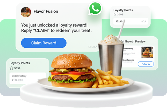 Run loyalty, automate WhatsApp follow‑ups, and grow your social β€” all in one place. Recharge AI Credits anytime to create content, images, and campaigns on demand.